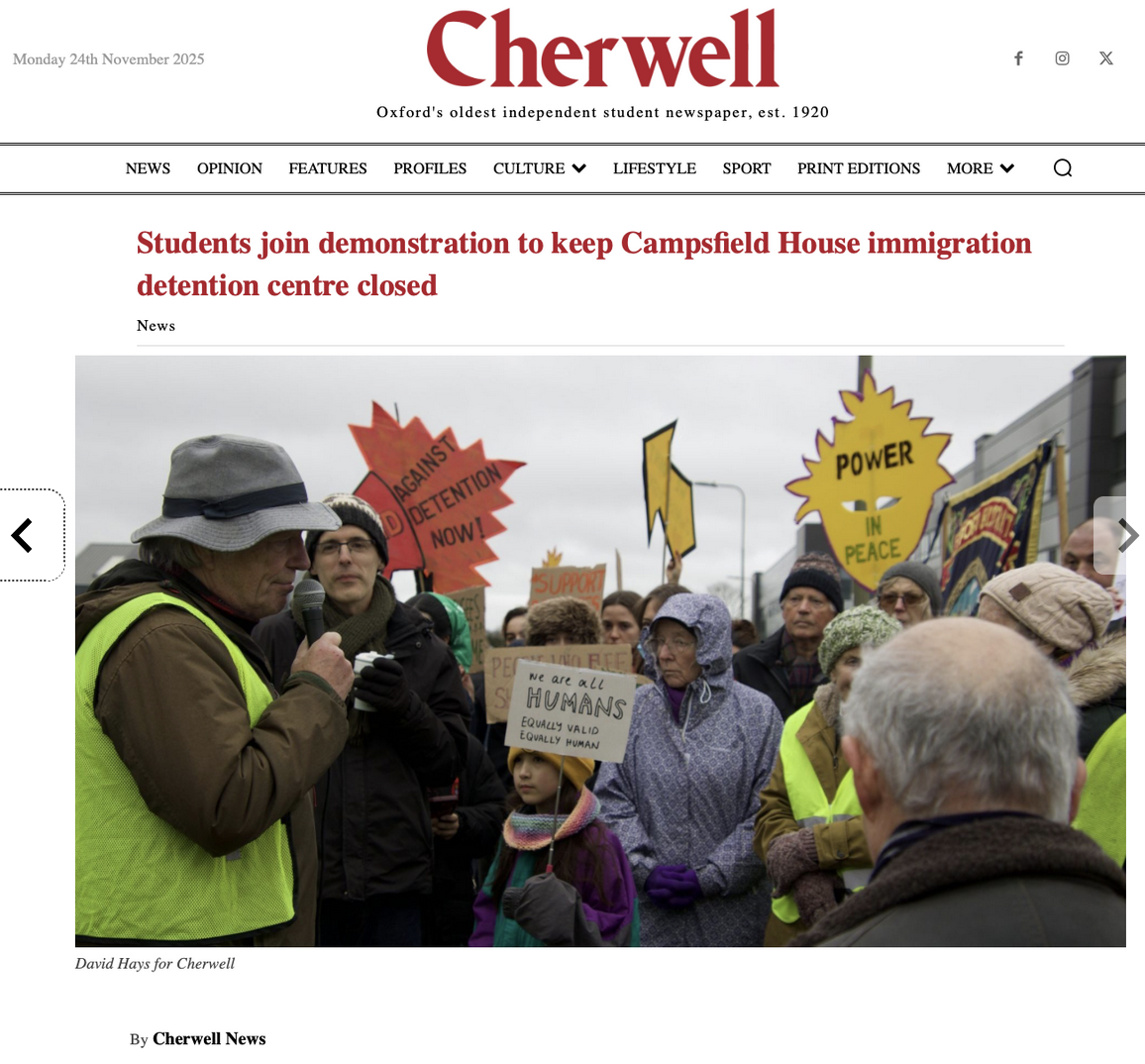 We are outraged to report that Campsfield Immigration Detention Centre reopens today. Supporters of the Coalition to Close Campsfield continue to call on the government to reverse its regressive step.