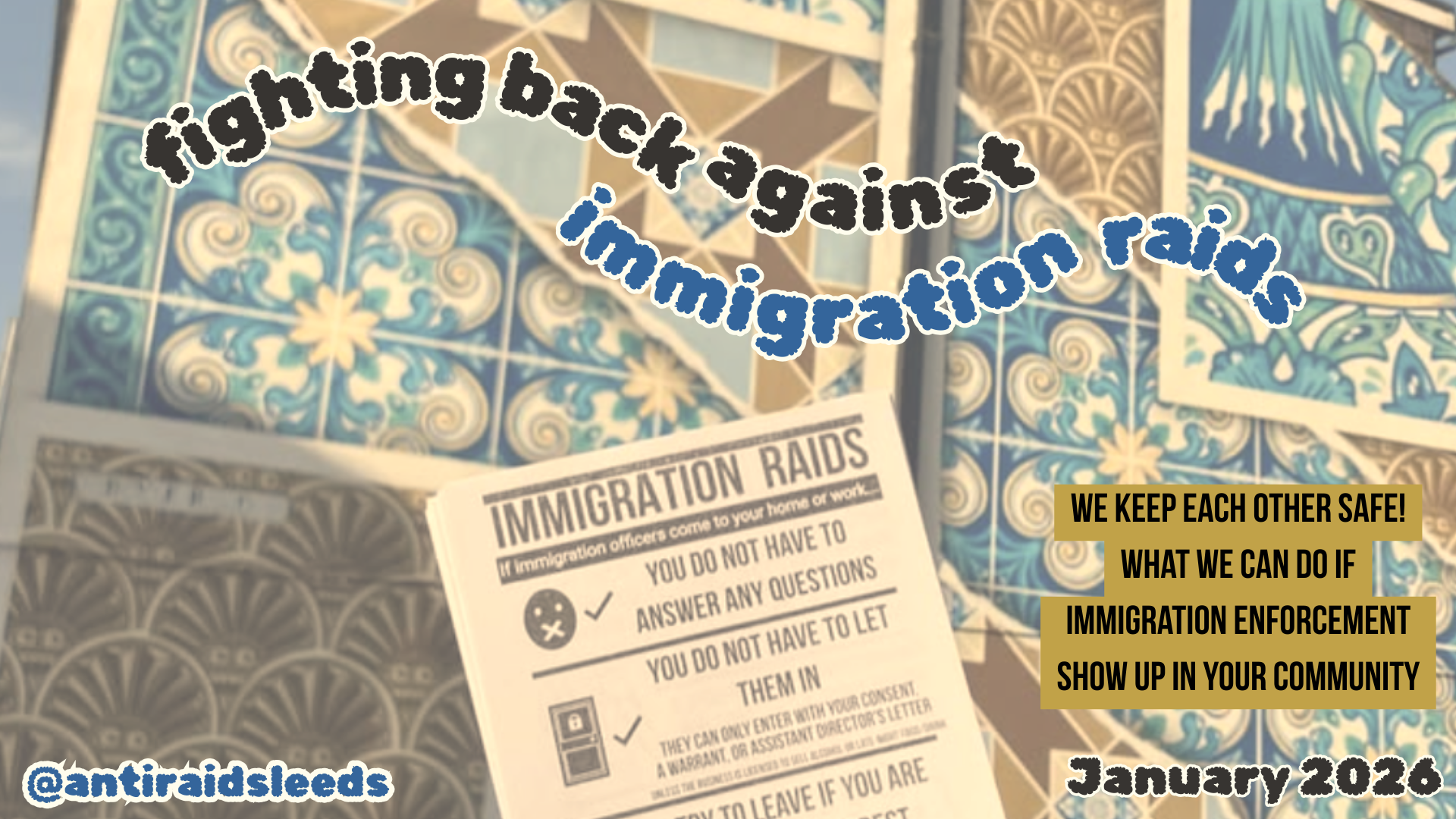As more people learn that Immigration Enforcement operates in the UK, Leeds Anti-Raids Action shares this statement on why raids are a strategy of fear and how communities can resist through practical, everyday solidarity: outreach, know-your-rights info, connection, and care. Resistance isn’t only physical – everyday solidarity can make communities harder to intimidate.