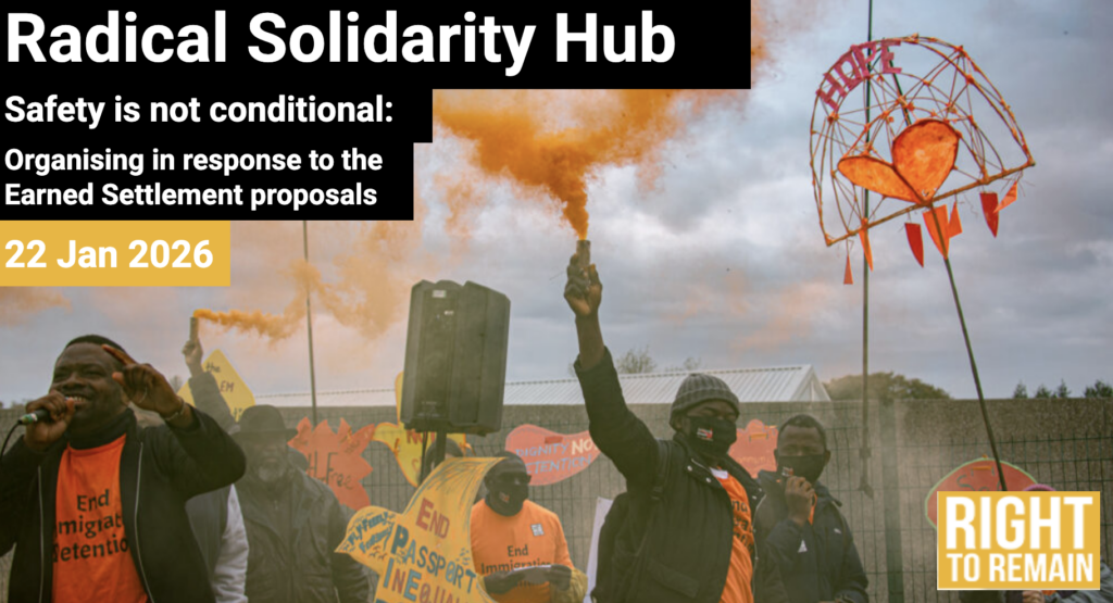 Last week on 22 January 2026, Right to Remain hosted our Radical Solidarity Hub – Safety is not conditional: organising in response to the Earned Settlement proposals. The session was co-delivered with These Walls Must Fall, a network of lived-experience campaigners, who are organising for power. During the session, one of the campaigners, Ven, delivered this powerful statement on behalf of everyone in These Walls Must Fall. Right to Remain believes that our struggle for migraiton justice must centre those with the lived experience of the Hostile Environment. We stand in solidarity and fight with them, always.