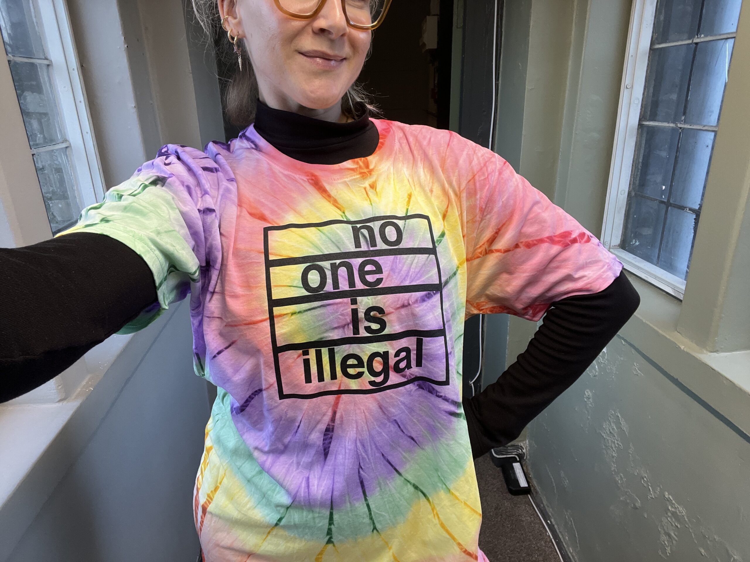 Introducing the limited special edition No One is Illegal t-shirt for Christmas! These t-shirts are naturally tie-dyed and produced with ethically-sourced organic cotton by Earth Positive, then screen-printed and produced by our friends at Vino Sangre. Note that sizes come up large.