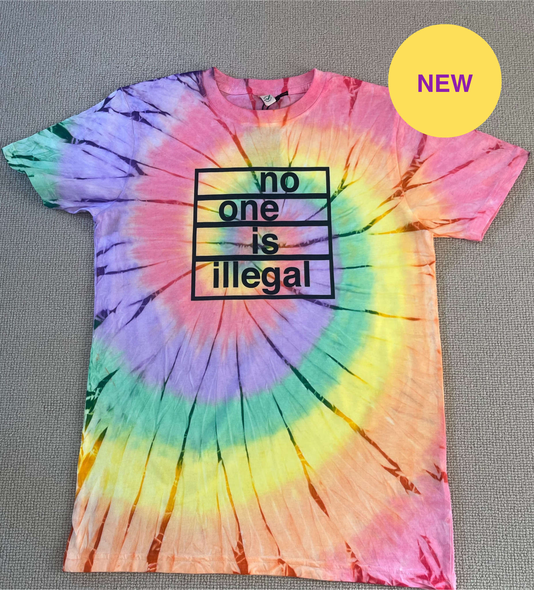 Introducing the limited special edition No One is Illegal, tie-dye screen-printed on ethically sourced organic cotton, and printed by our friends Earth Positive, the leader in ethical and sustainable apparel since 2007.