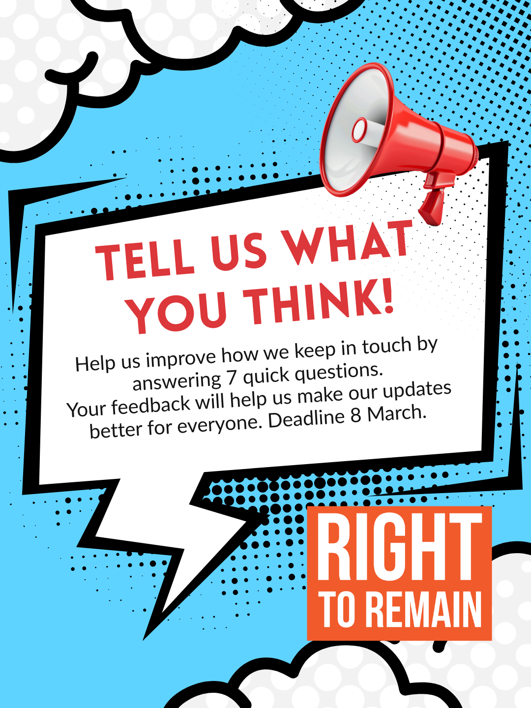 Right to Remain is reviewing how our friends are receiving updates and information from us. Please complete our very short online survey before 8 March.